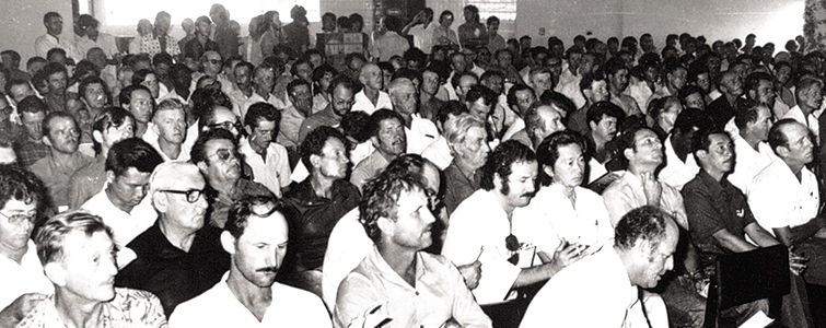 | Assembleia de eleição da nova diretoria, em janeiro de 1975, quando Gallassini foi eleito pela primeira vez presidente |