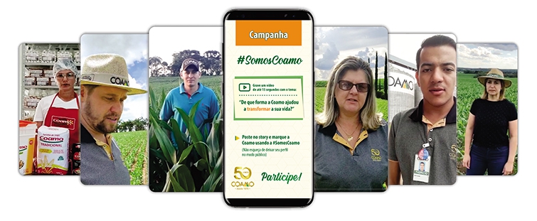 Para comemorar os 50 anos de fundação da Coamo, a cooperativa lançou nas redes sociais a campanha #SomosCoamo. Cooperados, funcionários e parceiros da cooperativa enviaram vídeos de até 15 segundos, respondendo à pergunta: “De que forma a Coamo ajudou a transformar a sua vida?”
