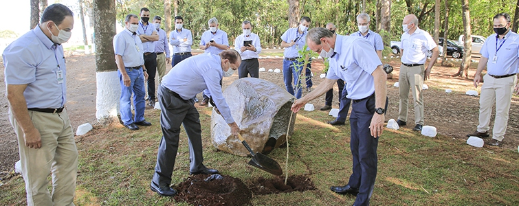 | Plantio de árvore realizada pelo idealizador e presidente do Conselho de Administração da Coamo, José Aroldo Gallassini e diretores Executivos |