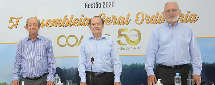 | Ricardo Accioly Calderari, secretário do Conselho de Administração da Coamo, José Aroldo Gallassini, presidente do Conselho de Administração da Coamo, e Claudio Francisco Bianchi Rizzatto, vice-presidente do Conselho de Administração da Coamo |