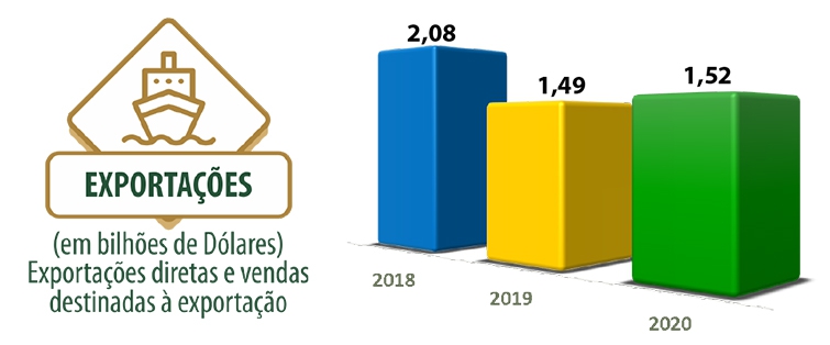 | Em 2020 o volume exportado pela Coamo foi de 4,604 milhões de toneladas de produtos |