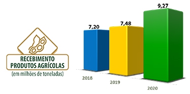 A Coamo recebeu em suas 111 unidades, localizadas estrategicamente Paraná, Santa Catarina e Mato Grosso do Sul, o montante recorde de 9,276 milhões de toneladas, o que representa 3,6% da produção brasileira de grãos. O ano foi desafiador e a Coamo demonstrou toda a sua capacidade de logística e utilização da sua estrutura de armazenagem, com capacidade estática de 6,822 milhões de toneladas.
