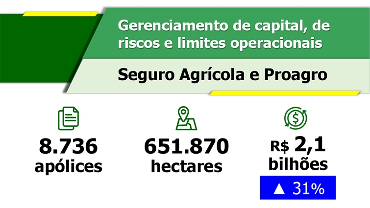Outro ponto de destaque no exercício 2020 da Credicoamo foi o crescimento de 31% no seguro agrícola, com o objetivo de mitigar os riscos da atividade rural. “Os associados estão cada vez mais conscientes de que o seguro rural deve ser considerado como um item do seu custeio. Em 2020 foram contratadas 8.736 apólices, abrangendo 651.870 hectares de lavouras com capital segurado de R$ 2,1 bilhões”, destaca José Aroldo Gallassini, presidente do Conselho de Administração da Credicoamo.