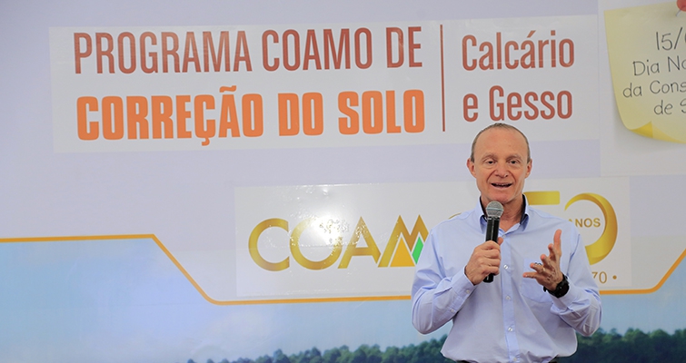 Dentro da sua missão por meio das diretrizes corporativas, a Coamo trabalha para levar de forma sustentável a melhoria de renda e nas atividades dos cooperados. O presidente Executivo da Coamo, Airton Galinari, reforça a importância dos cuidados com o solo e da atuação da cooperativa. “Sustentar é a primeira função do solo, pois o solo é a base de tudo. Falando em correção de solo, este foi o primeiro programa que a Coamo montou na sua origem, porque no início era grande a dificuldade com solo fraco e terras ácidas.”