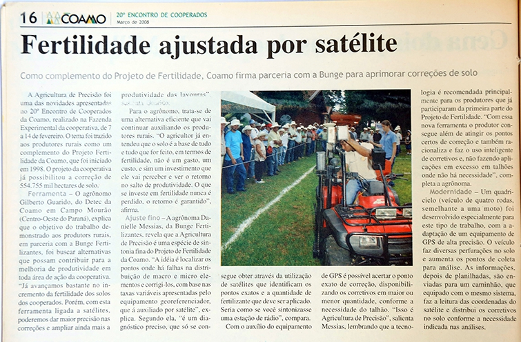 Na história da agricultura brasileira, os produtores da Coamo vêm fazendo a sua parte e colaborando para a força e o sucesso deste setor, que gera riquezas e impulsiona a balança comercial do país. Mas, a agricultura não pode parar, pois nem sempre as produtividades foram grandes como as colhidas nos últimos anos.