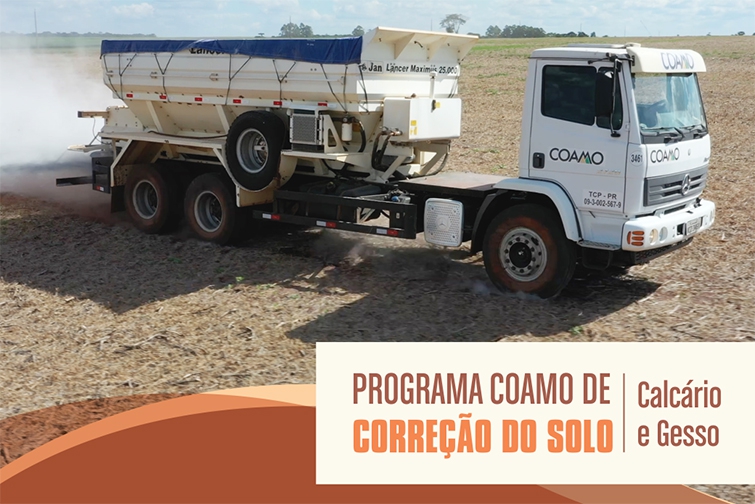 Coamo lança o Programa Coamo de Correção do Solo, para fornecimento de calcário e gesso com condições especiais para aplicação nas propriedades dos cooperados.