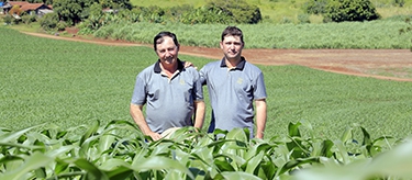 Dorival e Silvano Garcia Paschoal, pai e filho, são parceiros na lavoura. Dorival, junto com o irmão Daniel, cultiva por anos a lavoura que era do pai. Dorival sempre incentivou o trabalho no campo e assim, Silvano aprendeu a gostar e participar no dia a dia da propriedade. “É um orgulho ter um filho que se interessa pela agricultura. Ele está desde criança ao meu lado, na lavoura. É o responsável pelo maquinário e estou passando a parte de insumos para ele. Conversamos a respeito de tudo, para tomarmos decisões juntos. Fico contente que meus filhos se interessem pela agricultura e darão continuidade ao meu trabalho”, conta o agricultor.