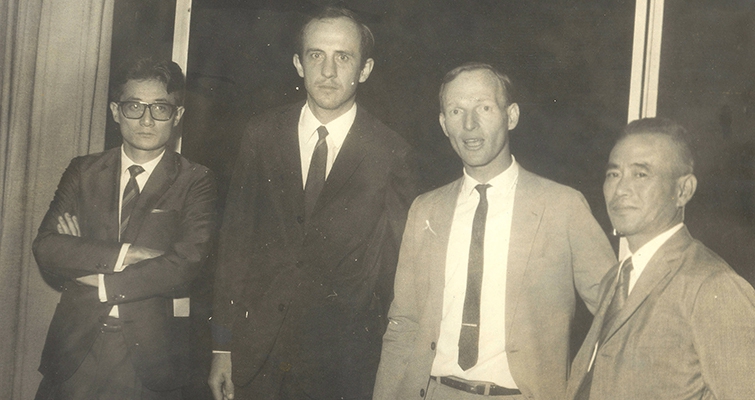 | Takeki Nishiyama, Wilson Thiesen, Guntolf van Kaick e Yoneju Tsunoda em foto do dia da constituição da Ocepar |