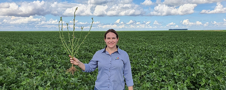 Carolina Deuner: Atuo na área de agronomia, fitopatologia em soja e trigo, área que estuda as doenças de plantas. Minha missão é gerar e divulgar informações de qualidade que sirvam de referência para os produtores.
