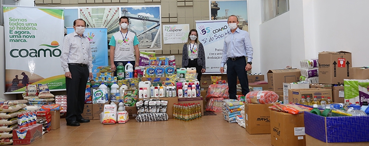 Assim, em toda a área de ação da Coamo e Credicoamo, no Paraná, Santa Catarina e Mato Grosso do Sul, além dos donativos, foram espalhados 2.000 cartões com mensagens dos funcionários da cooperativa. A campanha, coordenada pela gerência de Recursos Humanos por meio do Programa 5S, arrecadou junto aos funcionários: alimentos, produtos de limpeza e higiene pessoal em prol de instituições de caridade. As ações organizadas em todas as áreas somam 21.150 kg de alimentos, 8.750 peças de roupas e calçados, 7.200 unidades de material de limpeza, 6.800 unidades de produtos para higiene pessoal e 106 cobertores.