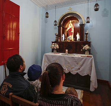 | Família mantém no interior da casa uma capela original da época |