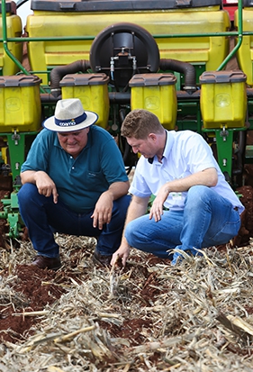 | Em Itaporã (MS), os cooperados Hélio e Hélio Junior, pai e filho, deram o ponta pé inicial para a implantação da cultura no dia 11 de outubro e o trabalho seguiu até o final do mês. Segundo o engenheiro agrônomo, Elvison Alves da Cruz, o ritmo de plantio no município é bem parecido com o do ano passado |