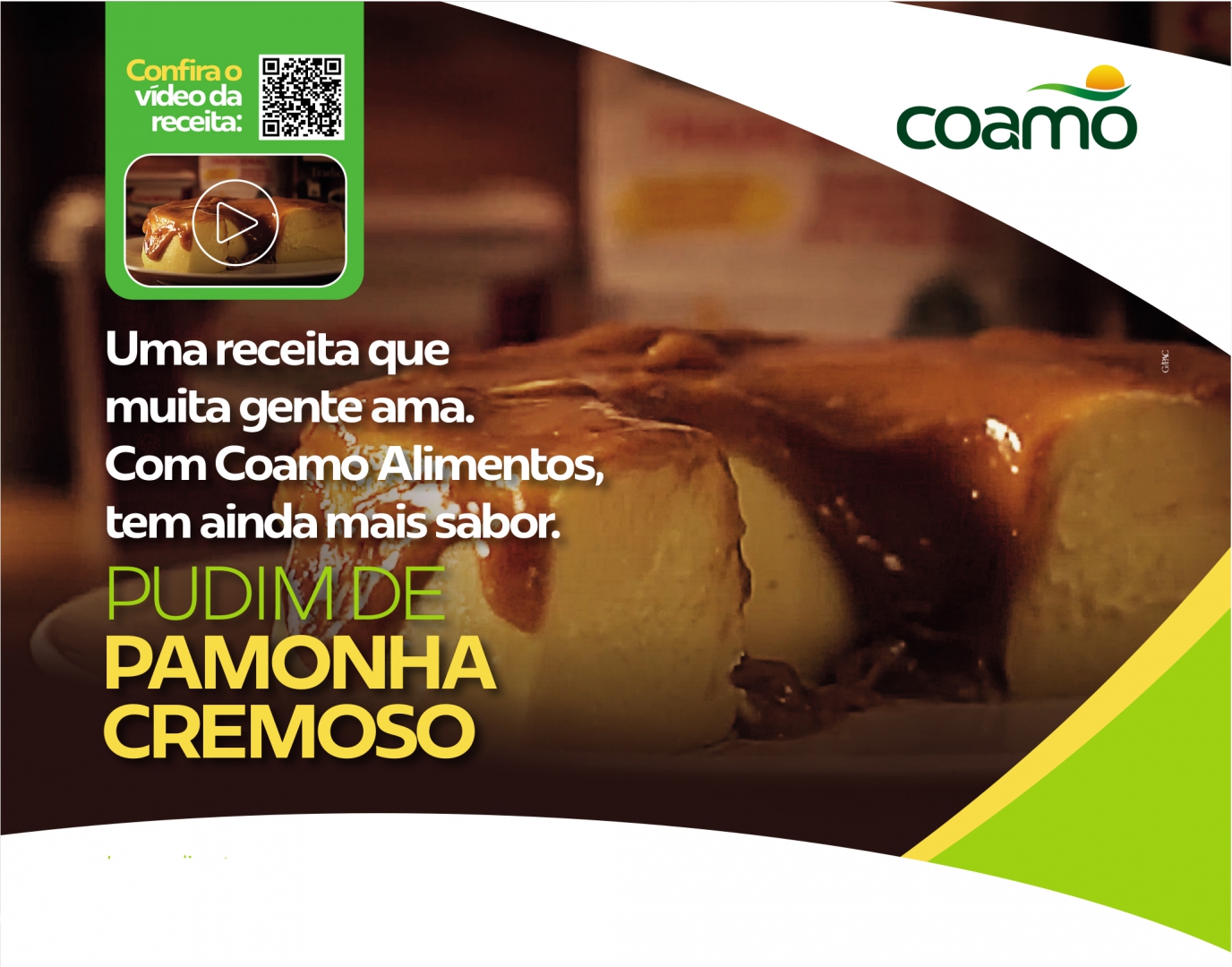 PUDIM: Comece colocando o leite e o milho em lata (sem a conserva) no liquidificador. Bata até misturar bem (5 minutos). Passe por uma peneira para tirar todo o bagaço do milho e volte para o liquidificador para bater o ovo, o sal e a Farinha de Trigo Coamo Tradicional. Em uma panela, adicione o leite condensado, a Margarina Coamo Família e a mistura batida e cozinhe em fogo baixo até que fique bem cremoso e pastoso, por volta de 15 minutos. Coloque em uma forma untada com margarina e leve para gelar por 4 horas ou da noite para o dia, assim desenforma melhor. Sirva com a calda de caramelo.