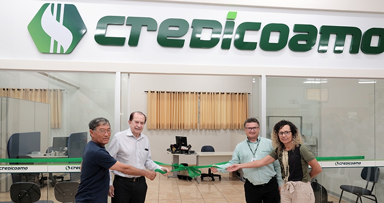 | Barbosa Ferraz: Satoru Hoshino (cooperado), José Aroldo Gallassini (presidente do Conselho de Administração da Credicoamo), Alcir Goldoni (presidente Executivo da Credicoamo) e Lucinette Sanches (vice-prefeita do município) |