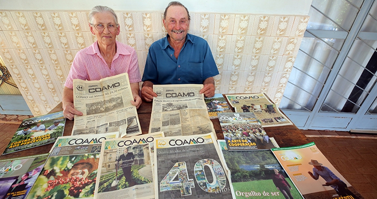 | Casal Ana e Leonel Spengler, de Tupãssi (PR), guardam jornais e revistas Coamo como fonte de inspiração do cooperativismo vivenciado diariamente na propriedade |