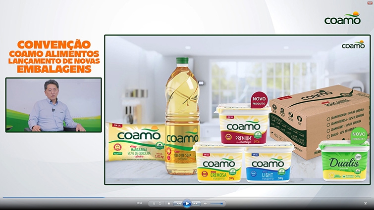 A Coamo realizou no dia 12 de novembro, a 1ª Convenção Virtual da linha alimentícia. O evento foi ao vivo e reuniu 150 representantes internos e externos de diversos Estados do país. Durante o encontro, a diretoria conversou com os participantes e lançou as novas embalagens dos produtos da cooperativa. Além disso, a equipe de marketing apresentou os resultados das campanhas realizadas em redes sociais.