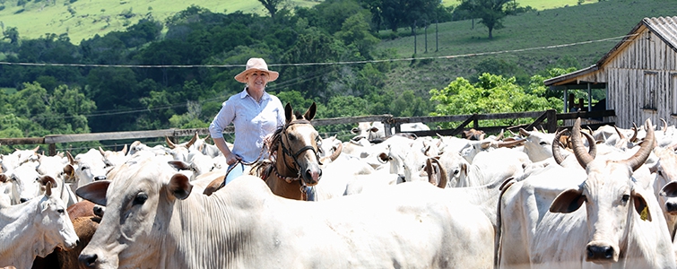 Montada no cavalo Amigo, a cooperada Sílvia Regina Frossard acompanha de perto o manejo dos animais na Fazenda da Balsa, em Altamira do Paraná (Centro-Oeste do Paraná). É mais um dia de trabalho na propriedade que tem o gado de corte como principal fonte de renda. Ela mora em Campo Mourão, distante cerca de 140 quilômetros da sede da fazenda, e faz questão de estar sempre presente na lida diária.