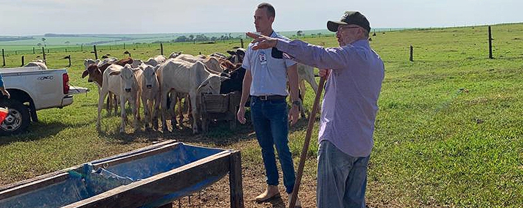 | Veterinário André Luís Vriesman Beninca com o cooperado José Carlos Ferreira Gonçalves, em Caarapó (MS) |