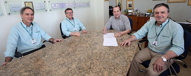 | José Luiz Conrado, diretor de Controladoria, Alcir José Goldoni, presidente Executivo, José Aroldo Gallassini, presidente do Conselho de Administração e Dilmar Peri, diretor de Negócios da Credicoamo |