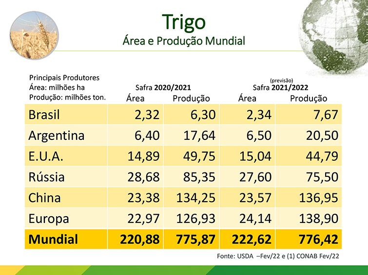 Ele destaca que o Brasil produz pouco trigo e não consegue ser autossuficiente devido ao clima, falta de pesquisa e incentivo. O país produziu no ano passado 6,3 milhões de toneladas e a previsão para esse ano é de 7,67 milhões de toneladas. “É muito pouco porque o nosso consumo é cerca de 12 milhões de toneladas. Tem que importar um grande volume de trigo para consumo. O preço do cereal está ao redor de R$ 88,00. É um bom preço em relação ao custo de produção na safra anterior e isso fez com que o cooperado tivesse uma boa rentabilidade com o trigo”, assinala.