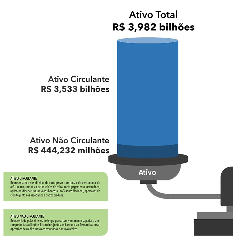 O Ativo Total Administrado e Patrimônio Líquido, atingiu o montante de R$ 4,33 bilhões, representando um crescimento de 12,65%, e o patrimônio líquido de R$ 966,85 milhões, representando uma evolução de 13,10% em relação ao ano de 2020. A sobra líquida e o lucro líquido gerados pelos produtos e serviços foram de R$ 113,42 milhões.