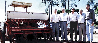 | Ricardo Calderari foi um dos precursores do plantio direto em Campo Mourão, a segunda região no país a praticar o sistema. Na foto, ele com os também agricultores pioneiros Henrique Gustavo Salonski, Joaquim Peres Montans e Gabriel Borsato |