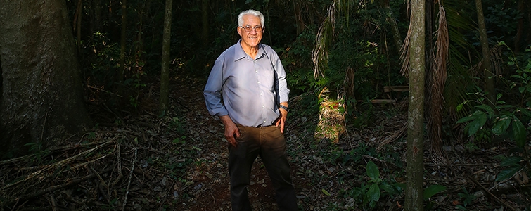 Em meio a uma área de mata nativa, o cooperado man - tém uma trilha de mais de mil metros para que visitantes possam caminhar e contemplar a natureza. Tudo realizado com bastante cuidado para não agredir o local. No meio da caminhada é possível ver árvores centenárias como, por exemplo, perobas que passam de 200 anos e palmitos nativos da variedade juçara. “É um local de contemplação e admiração, e não de extração. É um orgulho ver o resul - tado de anos de preservação.”