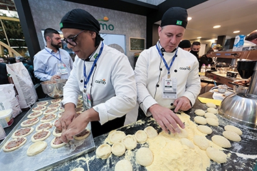 Quando o tema é culinária, um nome que não pode ficar de fora é do Chef Taico. Parceiro da Coamo, ele esteve no estande da cooperativa para preparar um prato especial para os visitantes. Ele fez um Muffin de Parmesão. “Eu estou extremamente feliz. Estar aqui no estande da Coamo, me enche de orgulho, porque é motivo de alegria para um chefe de cozinha, conseguir chegar na Apas Show e com uma marca forte como a Coamo, poder cozinhar e servir as pessoas com esses produtos excepcionais.”