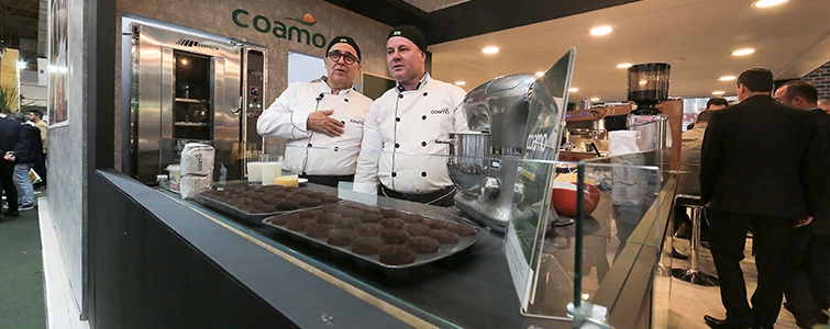 A Apas, sem dúvidas, é um evento de oportunidades. Para melhor atender e acomodar os visitantes, a Coamo trouxe para o estande nesta edição, o conceito de cafeteria. Além de servir quitutes feitos com os produtos da cooperativa. As farinhas, margarinas e o óleo de soja deram forma às esfirras. Os bolos foram preparados com as misturas da linha fácil. Uma forma de apresentar a aplicação da linha alimentícia. O estande da Coamo contou um barista que durante todo o evento preparou cafés especiais para os visitantes, demonstrando a qualidade e o sabor dos cafés Coamo.