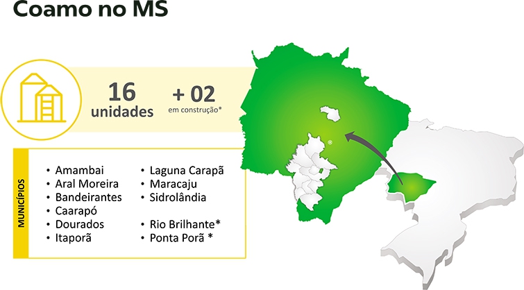 Outro ponto abordado na palestra aos cooperados, produtores e líderes locais e regionais, foi o crescimento do agronegócio em Mato Grosso do Sul e da Coamo, ampliando a sua atuação no Estado. “Estamos presente no MS com 12 unidades – a última inaugurada foi em Bandeirantes no ano passado e atualmente estão em construção duas novas unidades em Ponta Porã e Rio Brilhante. Contamos com mais de 3,5 mil cooperados e o trabalho de mais de mil funcionários diretos, além dos temporários. Para se ter uma ideia da importância do agronegócio, somente em 2021 a Coamo recolheu R$ 118,13 milhões de ICMS no Mato Grosso do Sul”, relata Galinari.