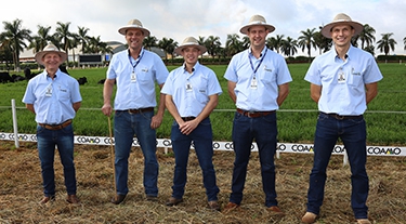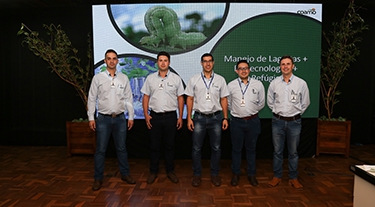 | Valdemiro Nesi, gerente de Compras de Bens de Fornecimento; Paulo Roberto Bacini, gerente de Fornecimento de Bens de Lojas; Marcelo Sumiya, gerente de Assistência Técnica; Airton Galinari, presidente Executivo; José Aroldo Gallassini, presidente dos Conselhos de Administração da Coamo e Credicoamo |