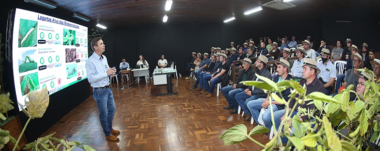 As cultivares de soja existentes com a tecnologia RR de 1ª geração não controlam essa lagarta, e o monitoramento minucioso ajuda na identificação da espécie. “É preciso saber qual lagarta está na lavoura para direcionar o manejo. Sempre reforçamos a importância do Manejo Integrado de Pragas (MIP). No futuro devemos ter algo mais digital, mas ainda o que traz resultados é o bom e velho pano de batida para verificar se é a rachiplusia nu ou chrysodeixis”, explica o engenheiro agrônomo, Lucas Gouveia Vilela Esperandino, da gerência de Assistência Técnica da Coamo.