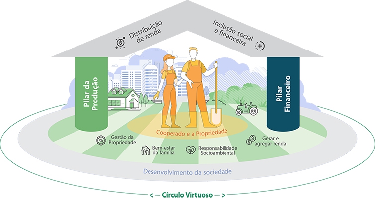 Ao longo desses anos a jornada cooperativista vem sendo realizada em harmonia e sinergia entre as duas cooperativas com a prática do princípio da intercooperação por meio de dois importantes pilares, o da produção e o financeiro. Contemplam estes pilares, entre outros benefícios, os projetos de assistência técnica direcionada e a emissão de propostas de financiamento; o fornecimento de insumos agropecuários, máquinas e equipamentos; o recebimento e comercialização da produção, e o financiamento de estocagem e garantia de liquidação do financiamento; o sistema de capitalização compartilhado e as sobras como resultado da participação dos cooperados e eficiência do cooperativismo.