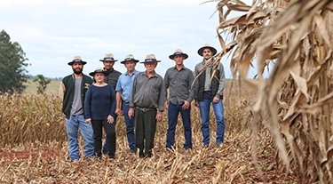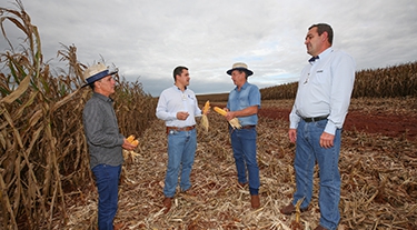 | Irmãos Natalino e Natanael Ferri, com o engenheiro agrônomo Regivaldo Pereira da Silva e o gerente Edilson Duarte de Aquino, da Coamo em Quinta do Sol |