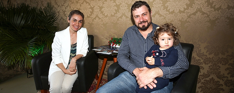 | Casal Liana Faccio Iaguszeski e Marcos Vinícius Torterollie Iaguszeski, com a filha Isabella |