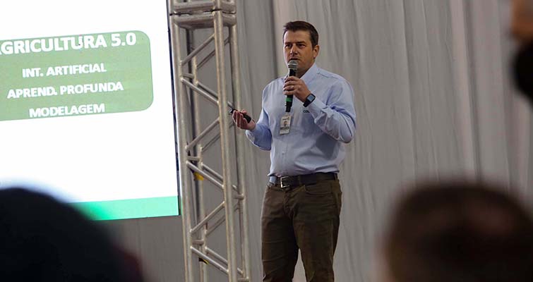 | Fabrício Bueno Corrêa, da gerência Técnica da Coamo, apresentou informações sobre as novas tecnologias inseridas na agricultura |