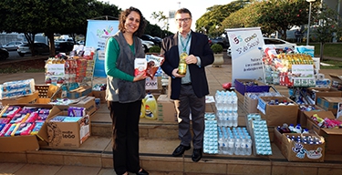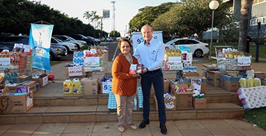 | Presidentes Executivos da Coamo e da Credicoamo na entrega simbólica dos produtos arrecadados à diversas entidades sociais de Campo Mourão |