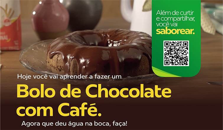 Para a cobertura: derreta o chocolate em banho-maria. Quando estiver completamente derretido, junte o creme de leite e o café. Mexa até obter um creme liso e homogêneo. Cubra o bolo com a cobertura.